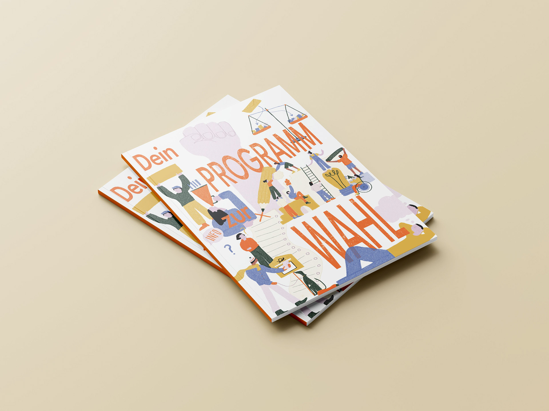 The brochure "Dein Programm zu Wahl" provides an overview of events related to the elections in 2025. It was distributed at various locations in Leipzig and can also be downloaded